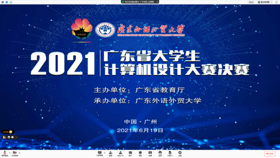 本网讯 2021年6月19日上午,由广东省教育厅主办、广东外语外贸大学承办的2021年广东省大学生计算机设计大赛暨第14届中国大学生计算机设计大赛广东赛区决赛开幕式在线上成功举办。广东省教育厅高等教育处处长姜琳,广东外语外贸大学校党委常委、副校长何传添,教务处处长杨晓辉,教务处副处长袁琦,信息科学与技术学院/网络空间安全学院院长蒋盛益、党委书记朱珍葶等领导班子成员,50位专家评委,参赛队伍指导教师代表和参赛学生代表出席了开幕式,开幕式由信息科学与技术学院/网络空间安全学院副院长王常吉主持。