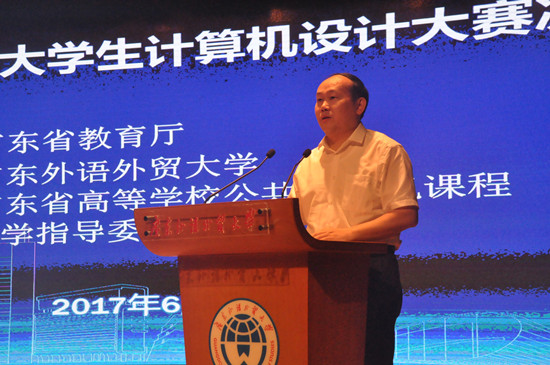 阳爱民为大赛致开幕辞,他指出,广东省大学生计算机设计大赛对激发省内大学生学习计算机技术的兴趣、提升大学生运用信息技术解决实际问题的综合四项能力、培养大学生团队合作意识和创新创业能力以及搭建高校计算机教育经验与成果交流的平台而言意义重大,他希望各代表队发挥各自的创新精神与技术特色,赛出水平、赛出风格,取得更好的成绩。