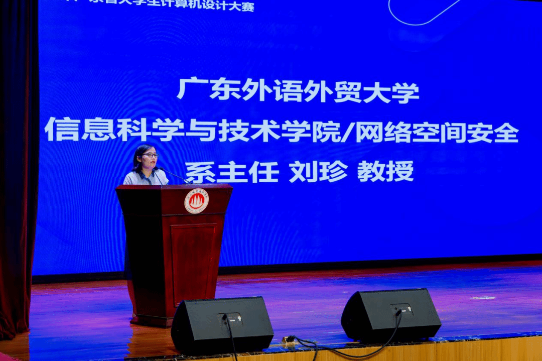 广东省大学生计算机设计大赛组委会代表、广东外语外贸大学信息科学与技术学院网络空间安全系系主任刘珍教授代表本届大赛组委会发表精彩致辞,她代表全体评委对组委会的信任表示衷心的感谢,对大赛的隆重开幕表示热烈的祝贺。