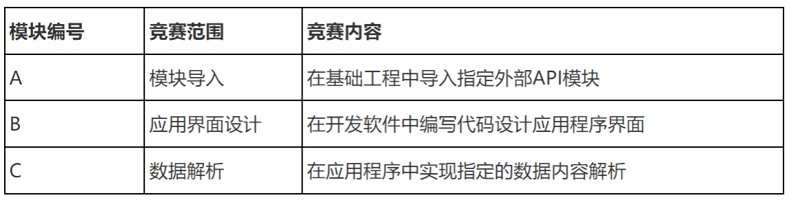 预选赛本科组及高职组考核模式一致,试题类型为应用程序代码实操,在应用开发平台(DevEcoStudio)中完成,满分为100分。竞赛任务分为三大部分:模块导入、应用界面设计、通信逻辑实现。