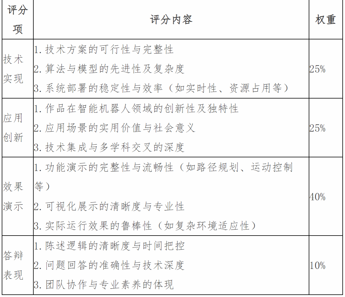 1.契合创新比赛的主题,正确体现智能机器人技术应用的内涵;