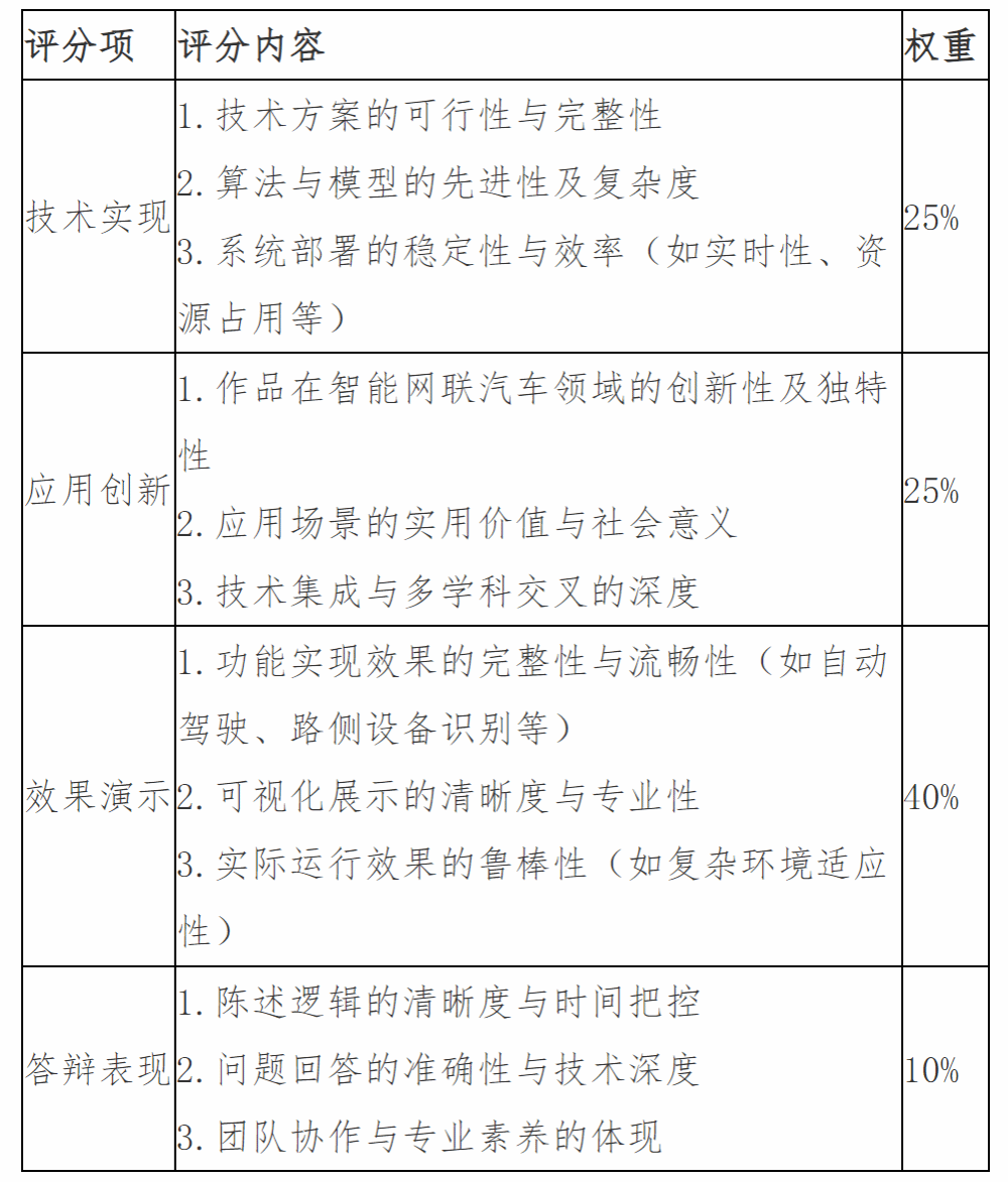 1.契合创新比赛的主题,正确体现智能网联汽车技术应用的内涵;