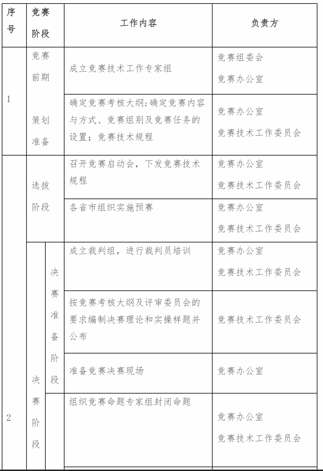 (2)裁判组实行“裁判长负责制”,设裁判长1名,全面负责赛项的裁判管理工作并处理比赛中出现的争议问题,并配裁判员若干名,负责协助裁判长工作。